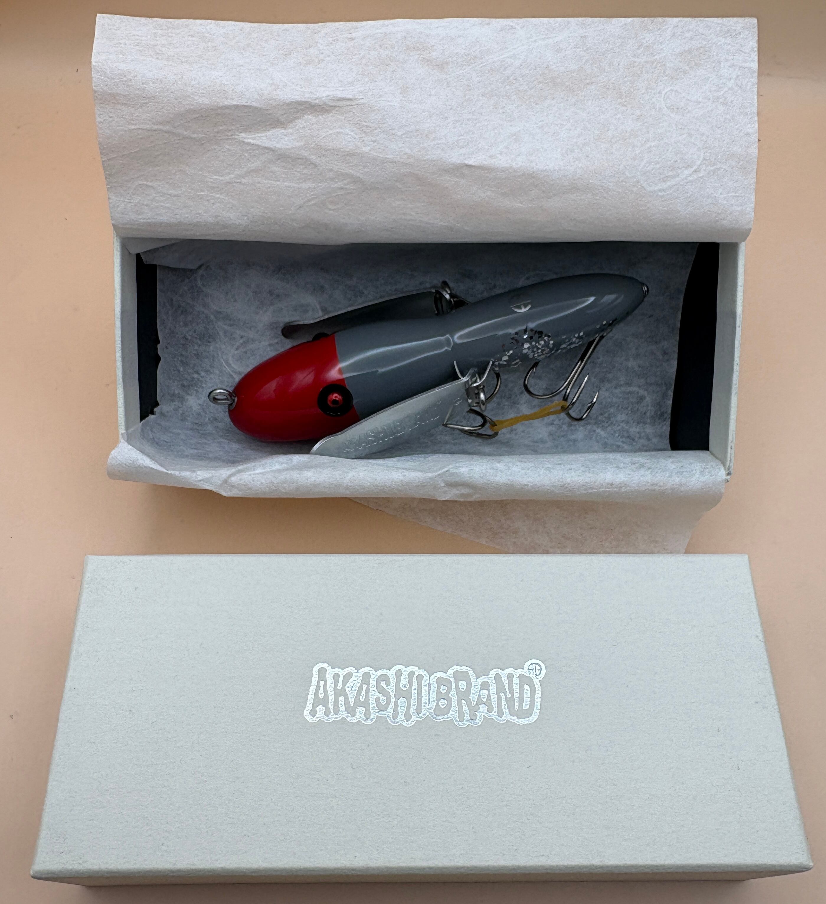 アカシブランドの製品としたは、希少なウッド製のハネモノルアーです。